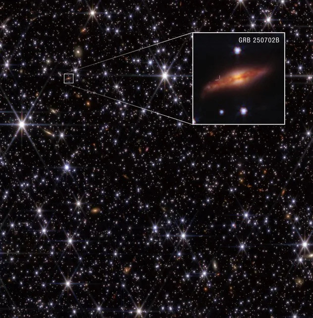 10月5日,NASA的詹姆斯·韦伯太空望远镜为天文学家提供了迄今为止最清晰的GRB 250702B宿主星系